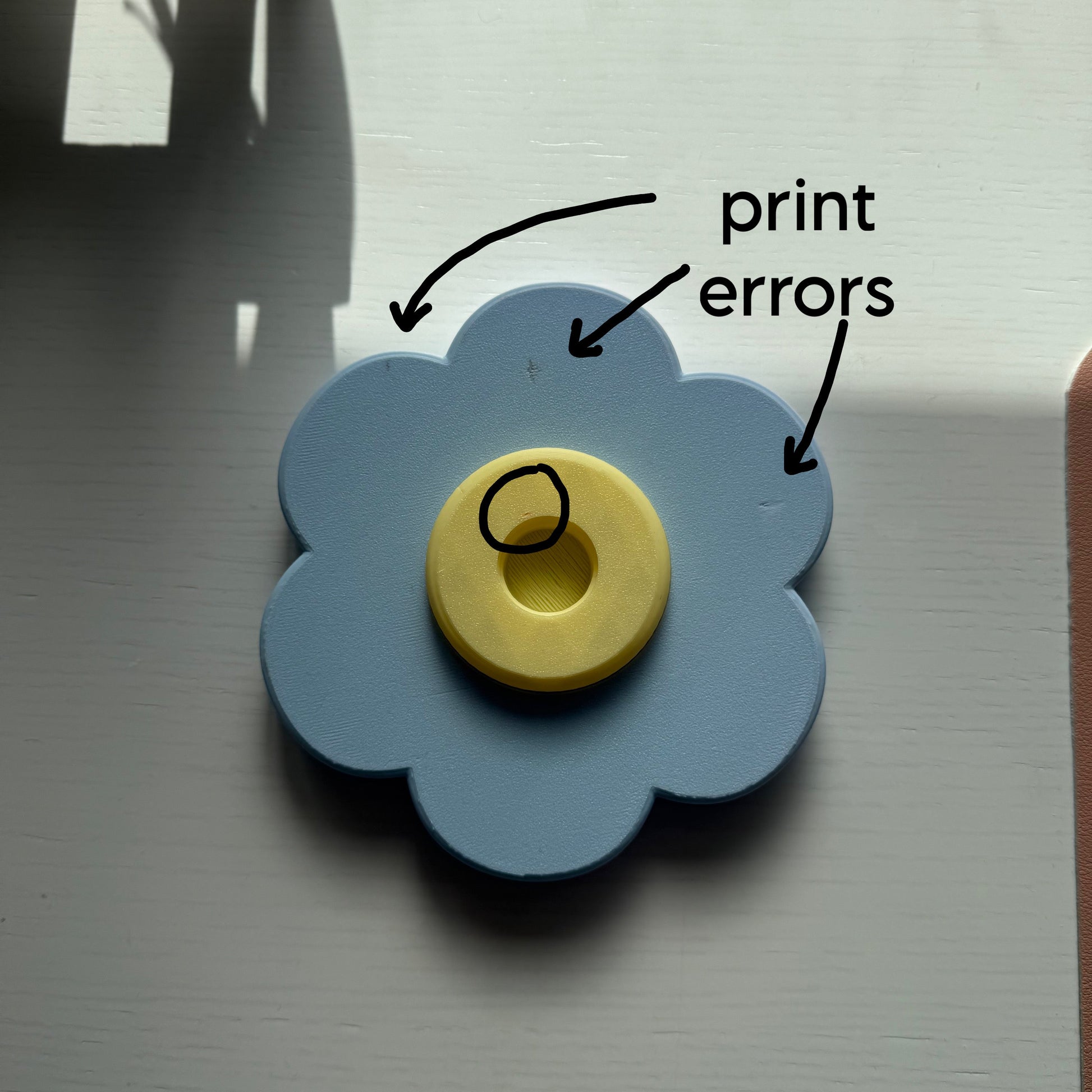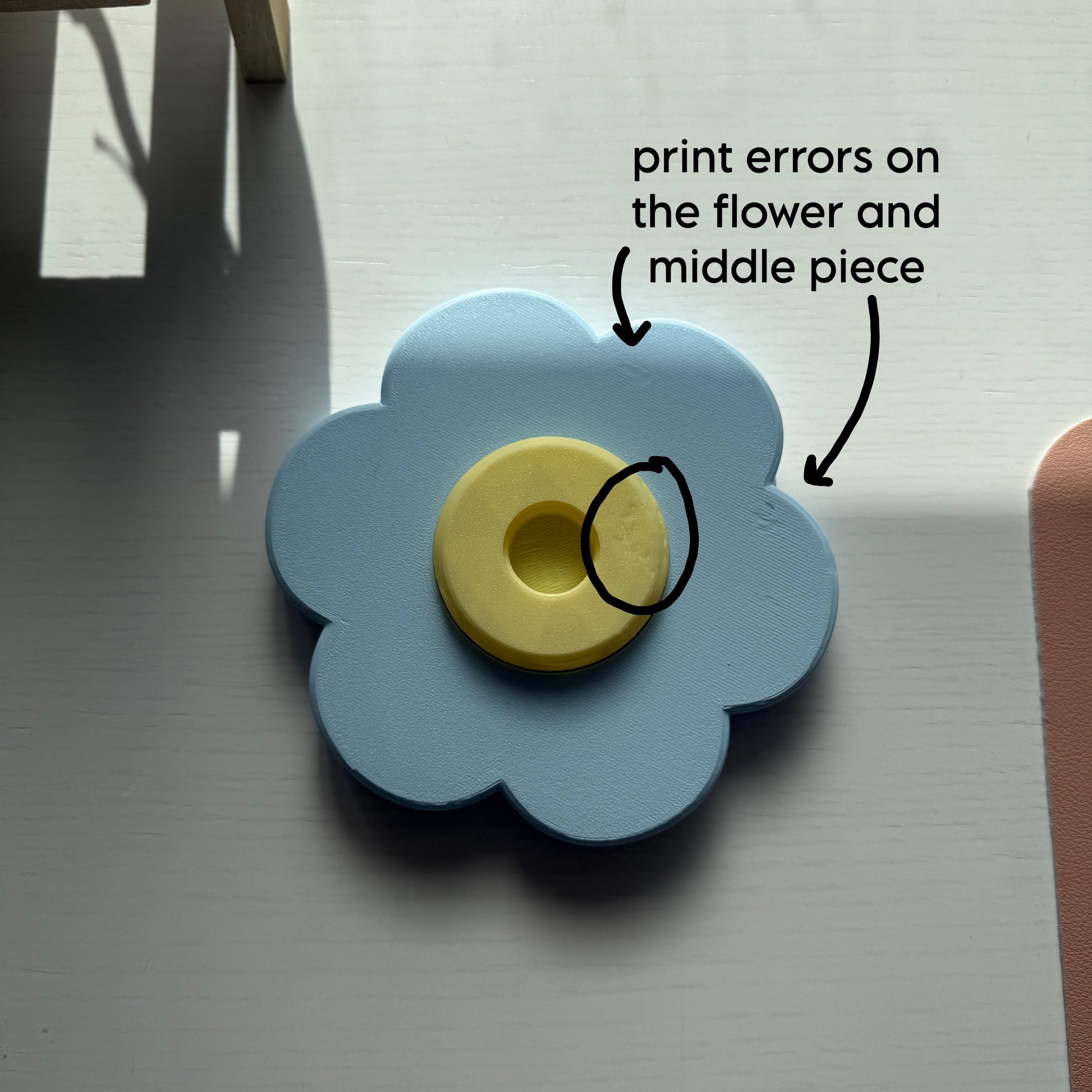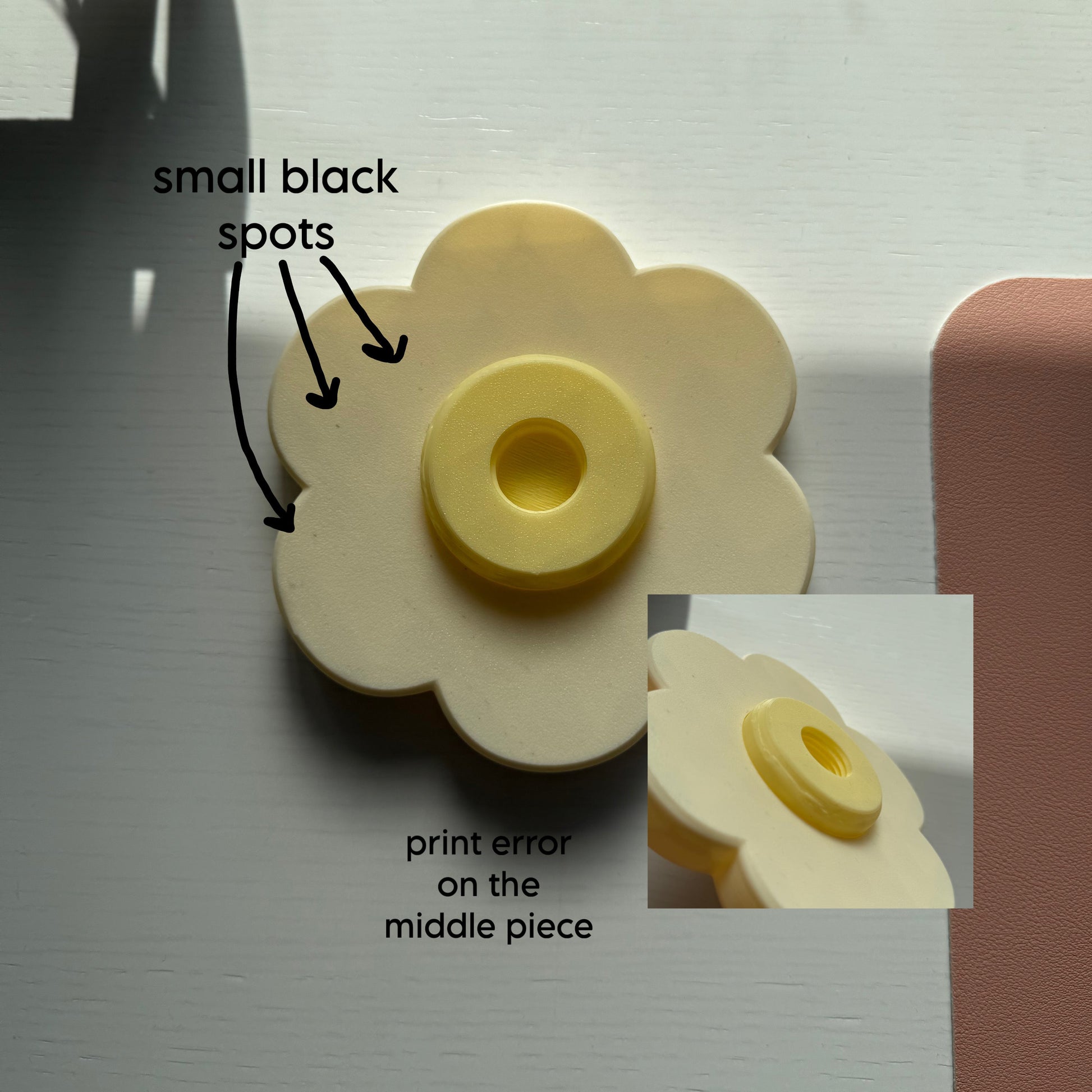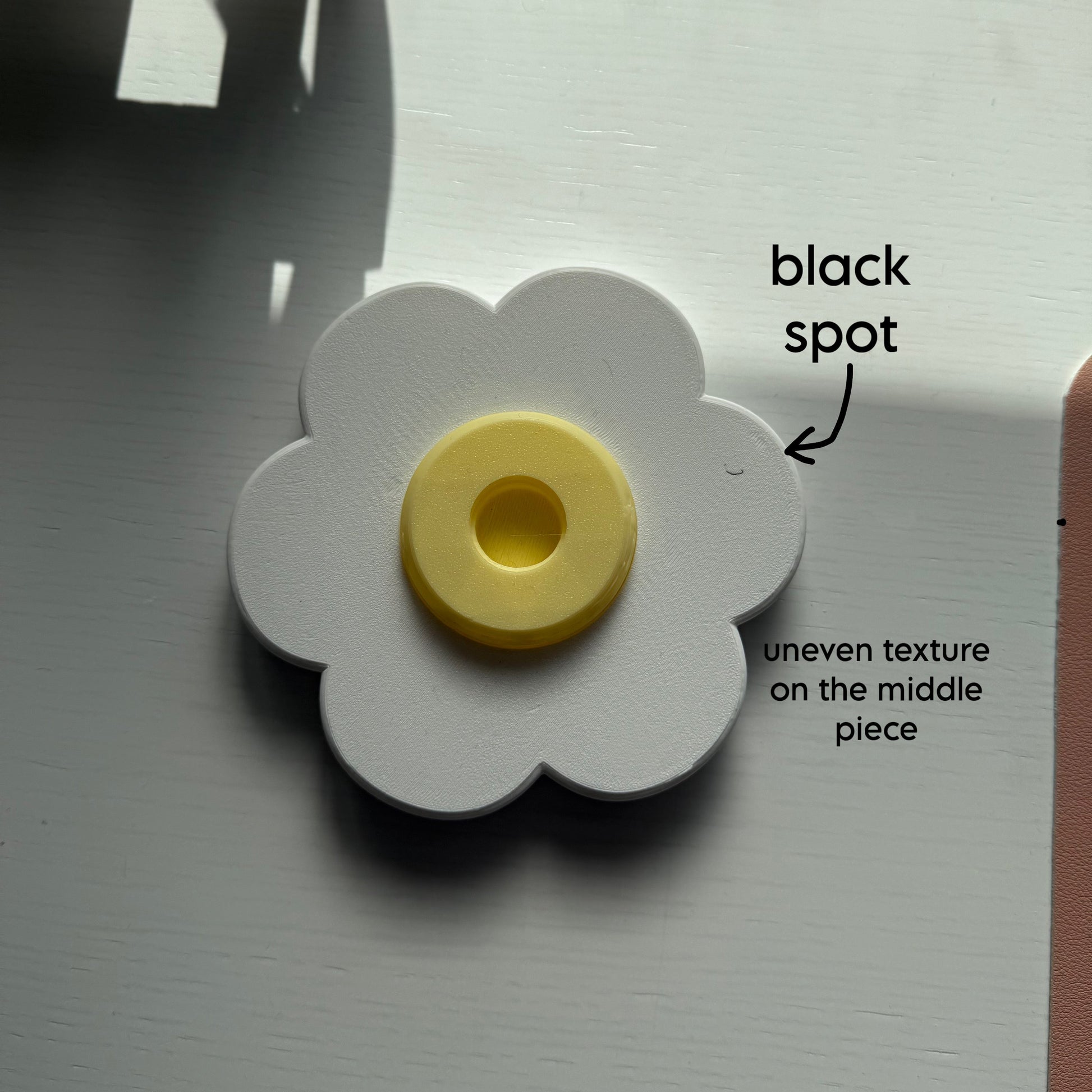 Our Second Chance pieces are spinners that have minor cosmetic imperfections that occurred during the printing process like small gaps, discoloration, surface bumps, or tiny holes.